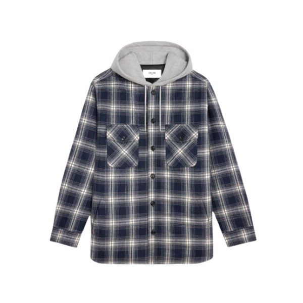• 뒤로 셀린느체크 캐시미어 후드 셔츠 자켓 (X공장) > 남성의류