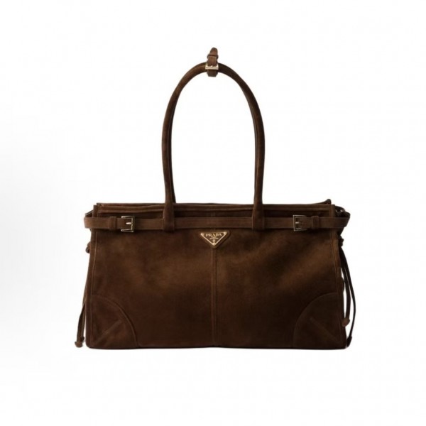 프라다 보니 스웨이드 토트 숄더백은 브랜드를 대표하는 에나멜 삼각형 금속 로고와 부드러운 스웨이드 소재가 조화를 이루는 세련된 아이템입니다.