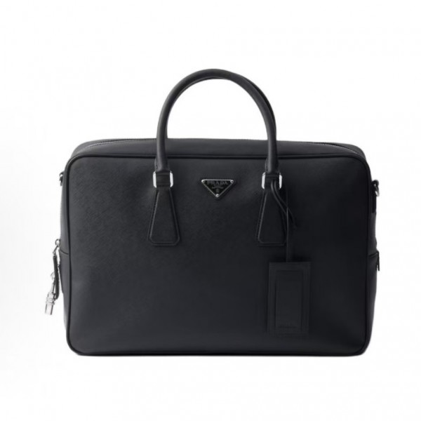 프라다 2VE028 사피아노 브리프케이스는 브랜드의 아이덴티티를 상징하는에나멜 삼각형 메탈로고가 전면에 세련되게 장식된 클래식한 비즈니스 가방입니다.