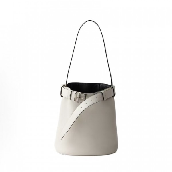 • 프라다 버클 레터링 로고 레더 버킷 숄더백 1BE085 화이트