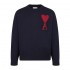 • 아미파리스 빅 하트 레드 로고 울 라운드 니트 블루 (탑아미공장)