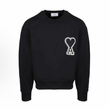• 아미파리 퓨어 컬러 하트 로고 클래식 라운드넥 맨투맨 블랙 (탑아미공장)