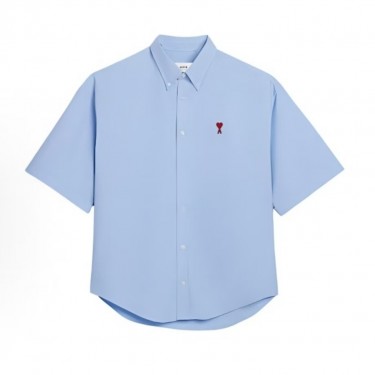 • 아미파리 단색 카라 버튼 로고 자수 하트 루즈핏 반소매 셔츠 블루 (탑아미공장)