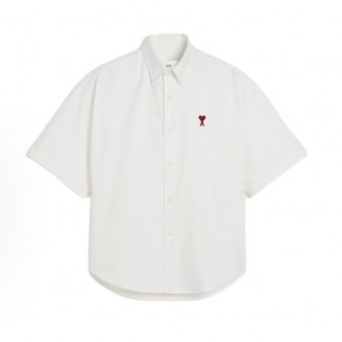 • 아미파리 단색 카라 버튼 로고 자수 하트 루즈핏 반소매 셔츠 화이트 (탑아미공장)