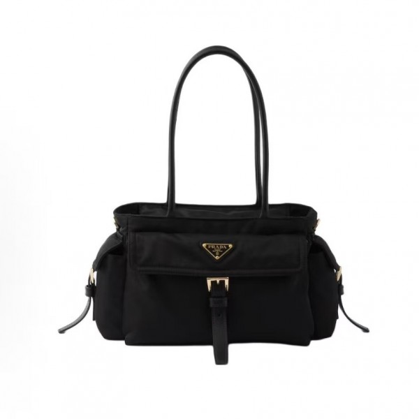 프라다 Re-Nylon Explore 숄더백 1BG596는 브랜드의 상징적인 삼각형 에나멜 메탈 로고와 친환경 리나일론 소재가 조화를 이루는 모던한 디자인의 숄더백입니다.