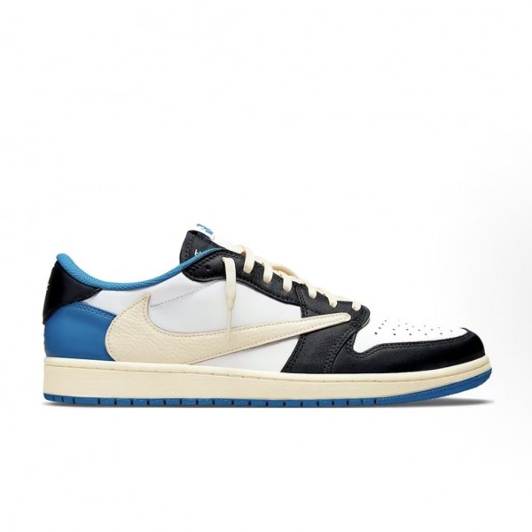 나이키(Nike)의 조던 브랜드와 트래비스 스캇(Travis Scott), 그리고 프라그먼트 디자인(Fragment Design)이 손을 잡고 선보인 에어 조던 1 로우 OG “밀리터리 블루” 모델입니다.