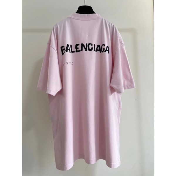 발렌시아가 핸드드로잉 그래픽 반팔 티셔츠 핑크