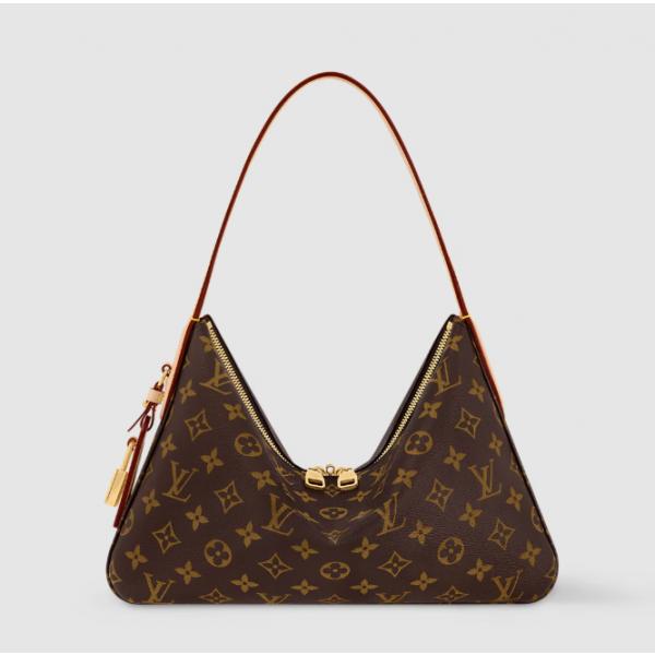 전통적인 루이비통 모노그램 코팅 캔버스에 부드러운 곡선 실루엣이 조화를 이루며,