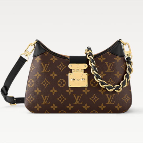전면에는 플랩과 LV 시그니처 금장 잠금 장식이 포인트로 적용되어 브랜드 고유의 클래식한 매력을 강조합니다.
