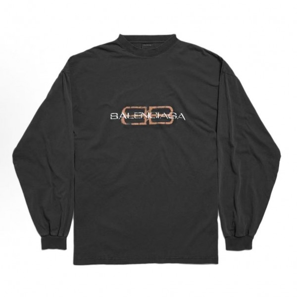 • 뒤로 발렌시아가 25FW BB 시리즈 빈티지 워시드 티셔츠 블랙 > 남성의류