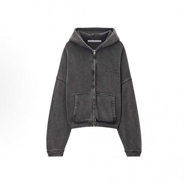 알렉산더왕 SS25 테리 코튼 워시드 로고 프린트 후드 집업 오버핏 긴팔 맨투맨