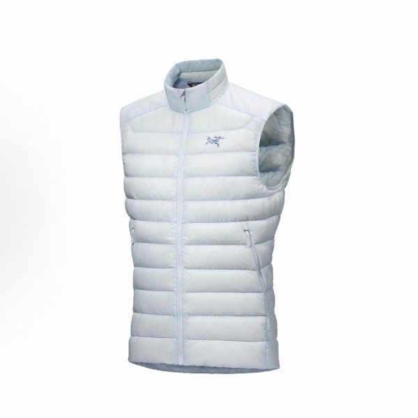 • 뒤로 아크테릭스 로고 프린트 구스다운 베스트 브레이크 오브 던 블루 > 남성의류