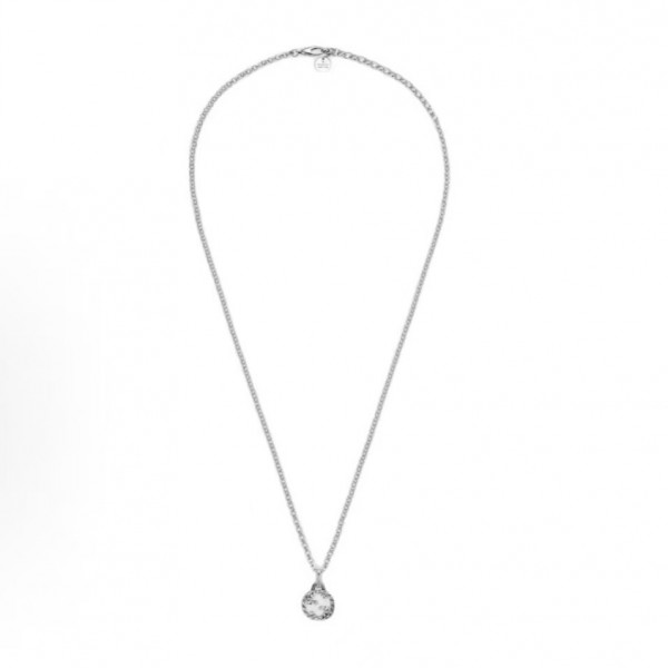 구찌 인터로킹 지 빈티지 925 실버 네크리스는 브랜드의 상징적인 인터로킹 지 로고를 중심으로 구성된 디자인으로,