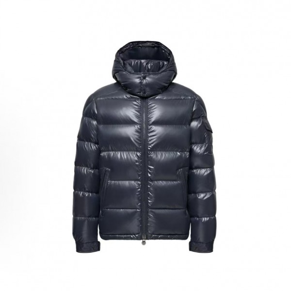 • 뒤로 몽클레르 시리즈 구스다운 스키 시즌 단색 글로시 방수 보온 숏 후드 다운 재킷 겨울용 블루 > 남성의류