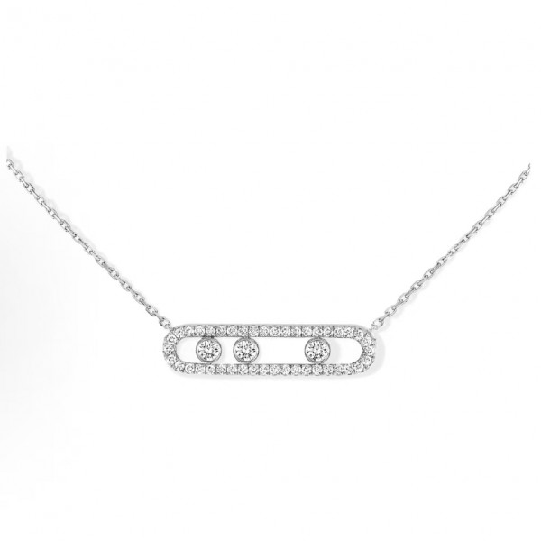 메시카 무브 밀세팅 화이트골드 다이아몬드 네크리스는 브랜드의 아이코닉한 무브 디자인을 정교한 밀세팅 기술로 구현한 세련된 주얼리입니다.