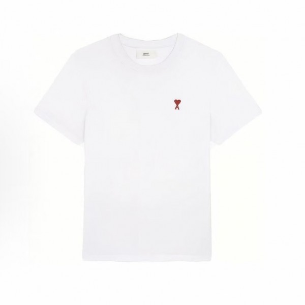 아미파리 단색 하트 로고 자수 라운드넥 루즈핏 반팔 티셔츠 화이트 (탑아미공장)