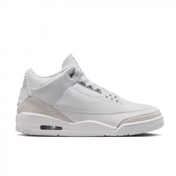 에어 조던 3 퓨어 머니는 조던 브랜드를 대표하는 클래식 실루엣에 절제된 화이트 컬러를 적용한 미드탑 농구화로,
