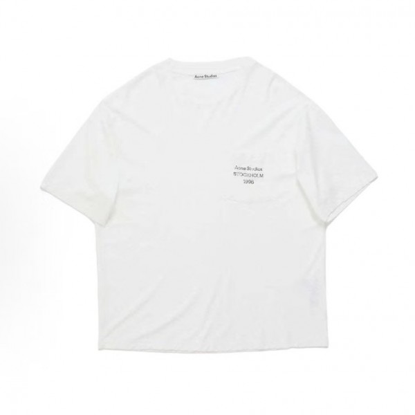 아크네 FW25 1996 로고 시리즈 루즈핏 크루넥 립넥 반팔 티셔츠 화이트 (X공장)
