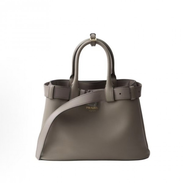 프라다 버클 엠보 레터링 로고 가죽 토트백 미디엄 1BA434 그레이