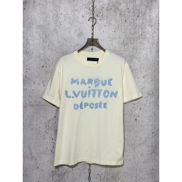 루이비통 26SS 로고 자수 반팔 티셔츠 남녀공용 오버핏 화이트 (사슬공장)