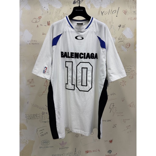 발렌시아가 NBA 콜라보 로고 넘버 반팔 져지 티셔츠 남녀공용 오버핏 화이트