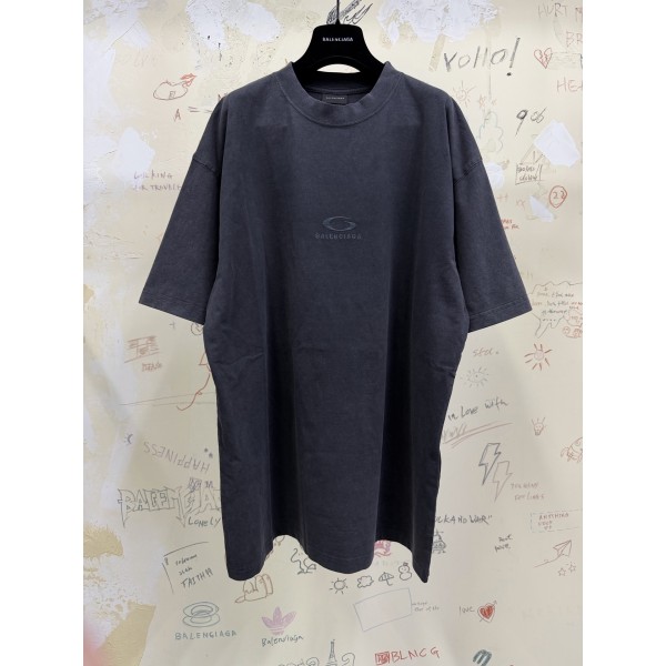 • 뒤로 발렌시아가 피그먼트 워싱 미니 로고 반팔 티셔츠 남녀공용 오버핏 차콜 > 남성의류
