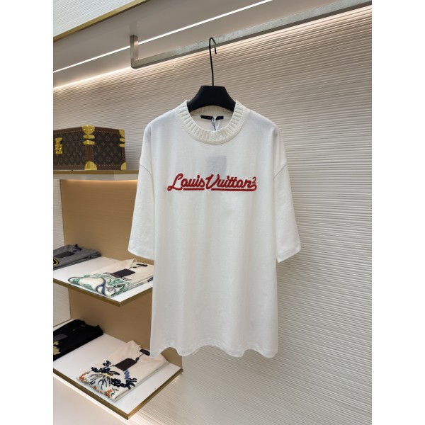 루이비통 클래식 레터 로고 자수 라운드넥 반팔 티셔츠 (X공장)