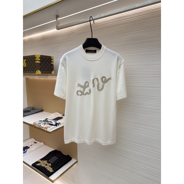 루이비통 리본 자수 니트 반팔 티셔츠 (X공장)