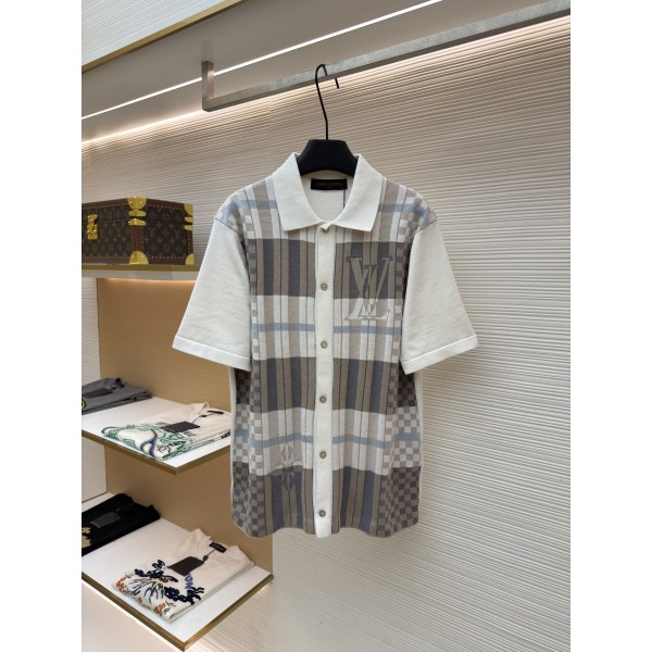 • 뒤로 루이비통 레터 플라워 다미에 배색 인타르시아 니트 반팔 티셔츠 (X공장) > 남성의류