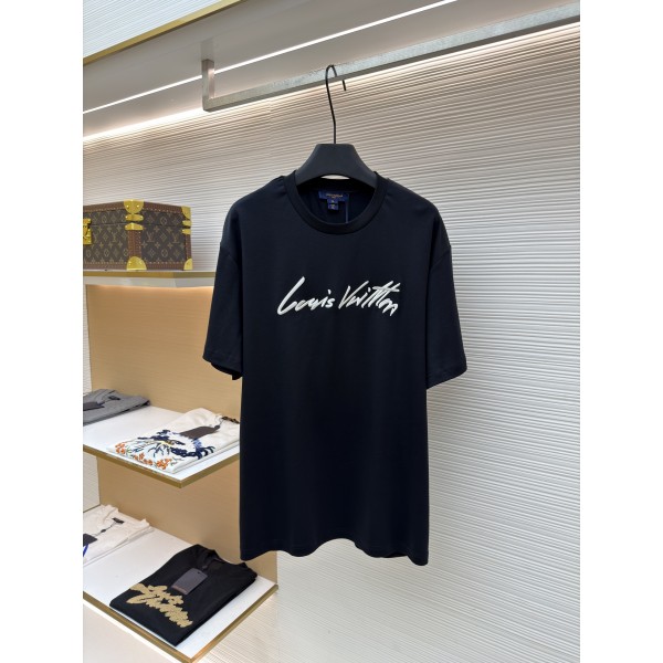 • 뒤로 루이비통 핸드라이팅 레터 자수 라운드넥 반팔 티셔츠 (X공장) > 남성의류
