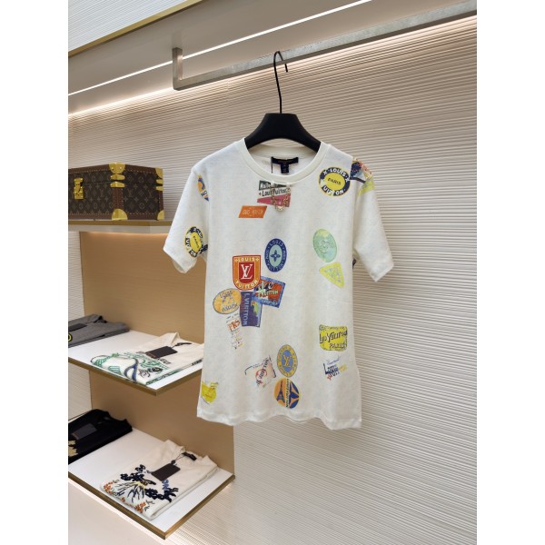 루이비통 빈티지 트래블 스탬프 패턴 메탈 체인 포인트 반팔 티셔츠 (X공장)