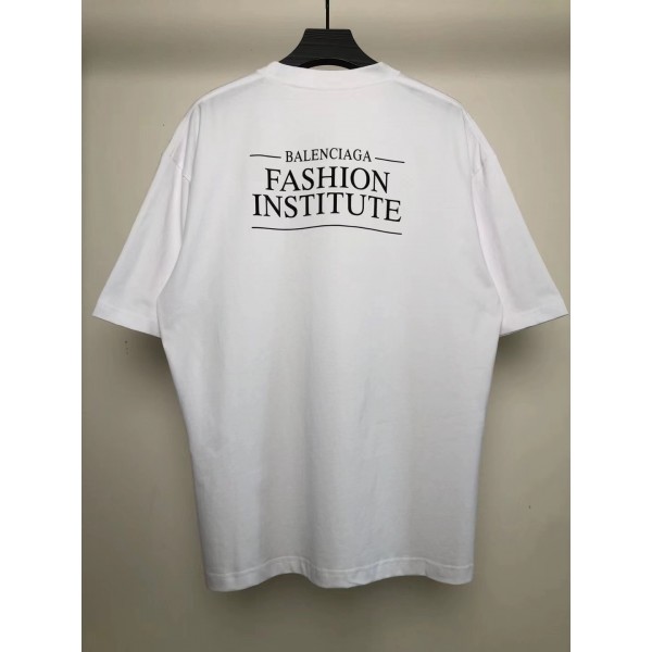 발렌시아가 패션 인스티튜트 프린트 빈티지 반팔 티셔츠 화이트