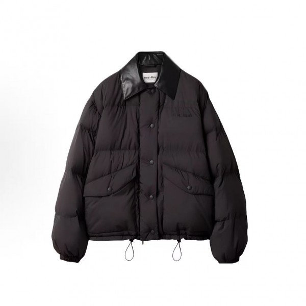 • 미우미우 프린트 레더 칼라 다운 점퍼  블랙   (X공장)