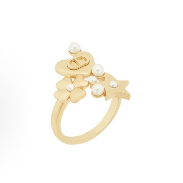 디올 러키 시리즈 하트 디자인 골드 메탈 링 여성용 골드 > 악세사리