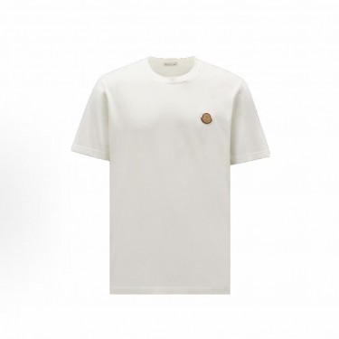 • 몽클레르 솔리드 로고 패치 라운드넥 반팔 티셔츠 남성용 화이트 (탑몽X)
