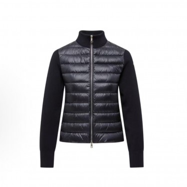 • 몽클레르 패디드 코듀로이 패디드 울 집업 가디건 여성용 울 혼방 배색 하이넥 다운 자켓 (탑몽X)