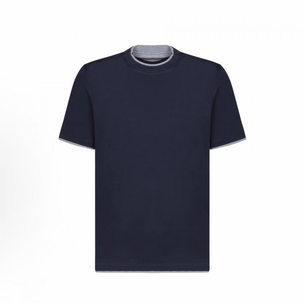 브루넬로 쿠치넬리 크루넥 반소매 티셔츠 남성 네이비 (B+공장) > 남성의류