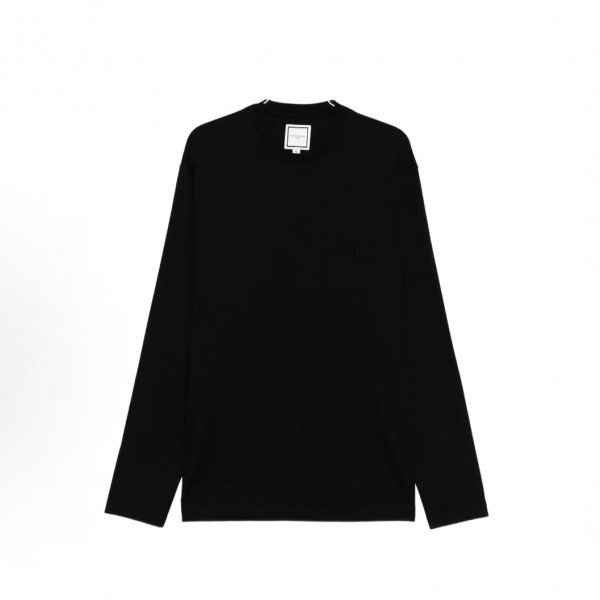 우영미 레터 플라워 드롭숄더 라운드넥 긴팔 티셔츠 남성용 블랙 요약정보 및 구매