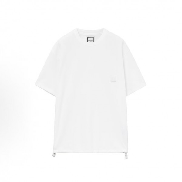 • 우영미 솔리드 드롭숄더 반팔 라운드넥 루즈핏 티셔츠 남성용 화이트