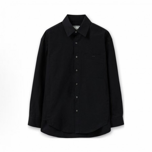 우영미 SS25 남성 백 레터 프린트 칼라 긴팔 셔츠 블랙 > 남성의류