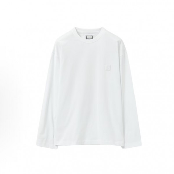 • 우영미 레터 플라워 드롭숄더 라운드넥 긴팔 티셔츠 남성용 화이트