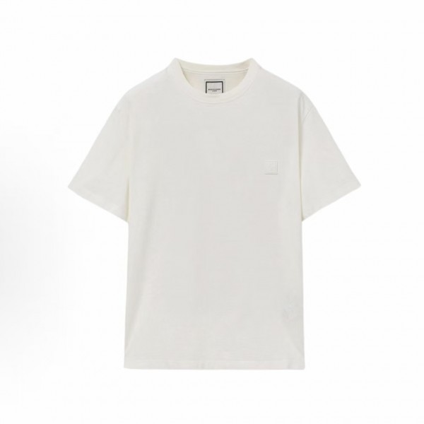 • 뒤로 우영미 남녀공용 플라워 백 레터 프린트 라운드넥 반팔 티셔츠 화이트 베이지 > 남성의류