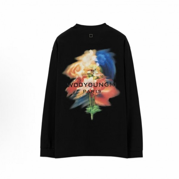우영미 플라워 라운드넥 긴팔 티셔츠 남성용 블랙 요약정보 및 구매