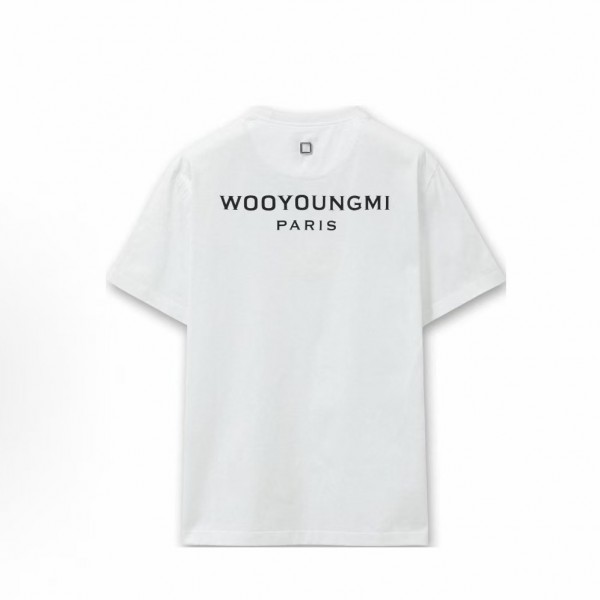 우영미 SS25 백 로고 프린트 크루넥 반팔 티셔츠 남성용 화이트