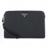 프라다 사피아노 레더 지퍼 클러치 블랙 2VF056은 브랜드의 시그니처 사피아노 가죽으로 제작된 남성용 클러치백입니다.