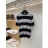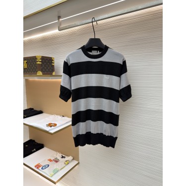 • 디올 로고 자수 배색 스트라이프 니트 반팔 탑 (X공장)
